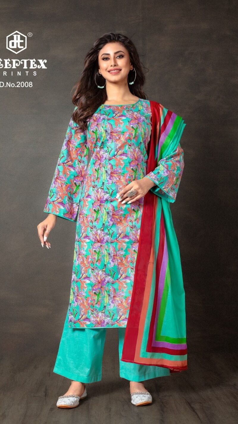 The Deeptex Aalia Afreen Vol-02 – Karachi Dress Material collection invites you to experience the timeless elegance and intricate artistry of Pakistani fashion. Indeed, this premium unstitched suit set from Deeptex is a tribute to the celebrated design aesthetic of Karachi, known for its graceful silhouettes, sophisticated prints, and exquisite embroidery. Forget the compromises of ready-to-wear clothing and instead, embrace the luxury of a custom-stitched outfit. This set provides you with high-quality, coordinated fabrics to create a stunning salwar kameez or straight suit that is not only made for you but also tells a story of cross-border sartorial heritage.