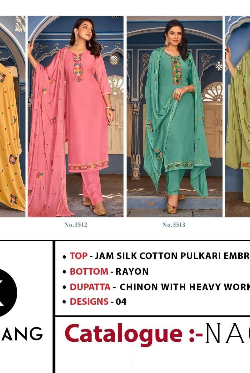 Nagma Kalarang Jam Silk Cotton Embroidery Work Suits