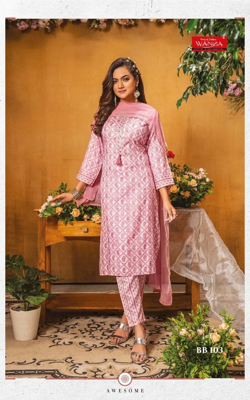 New Fancy Rayon Hand Work Kurti Pant Dupatta Blooming Beauty Wanna