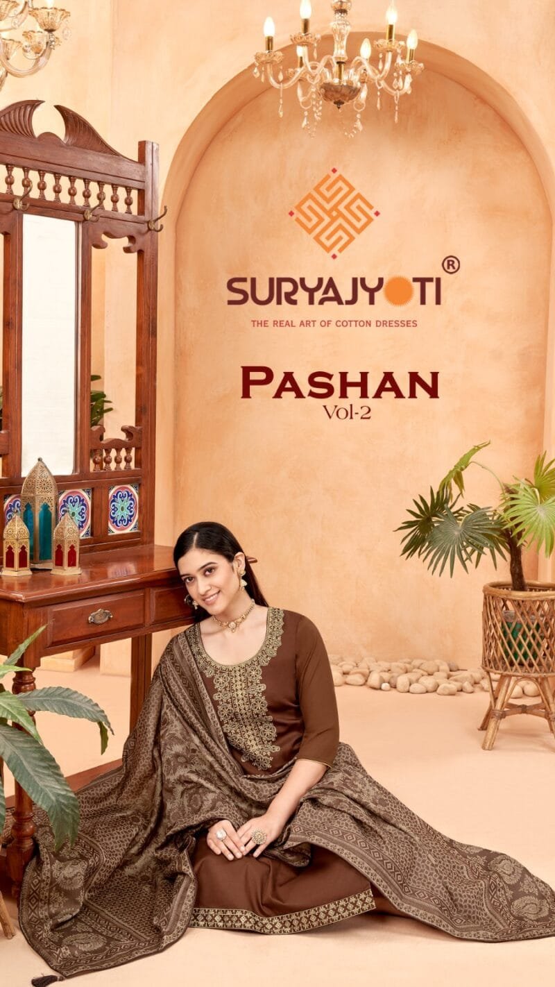 Pashan Vol 2 Suryajyoti Jaam Satin with Neck Border Embroidery Work