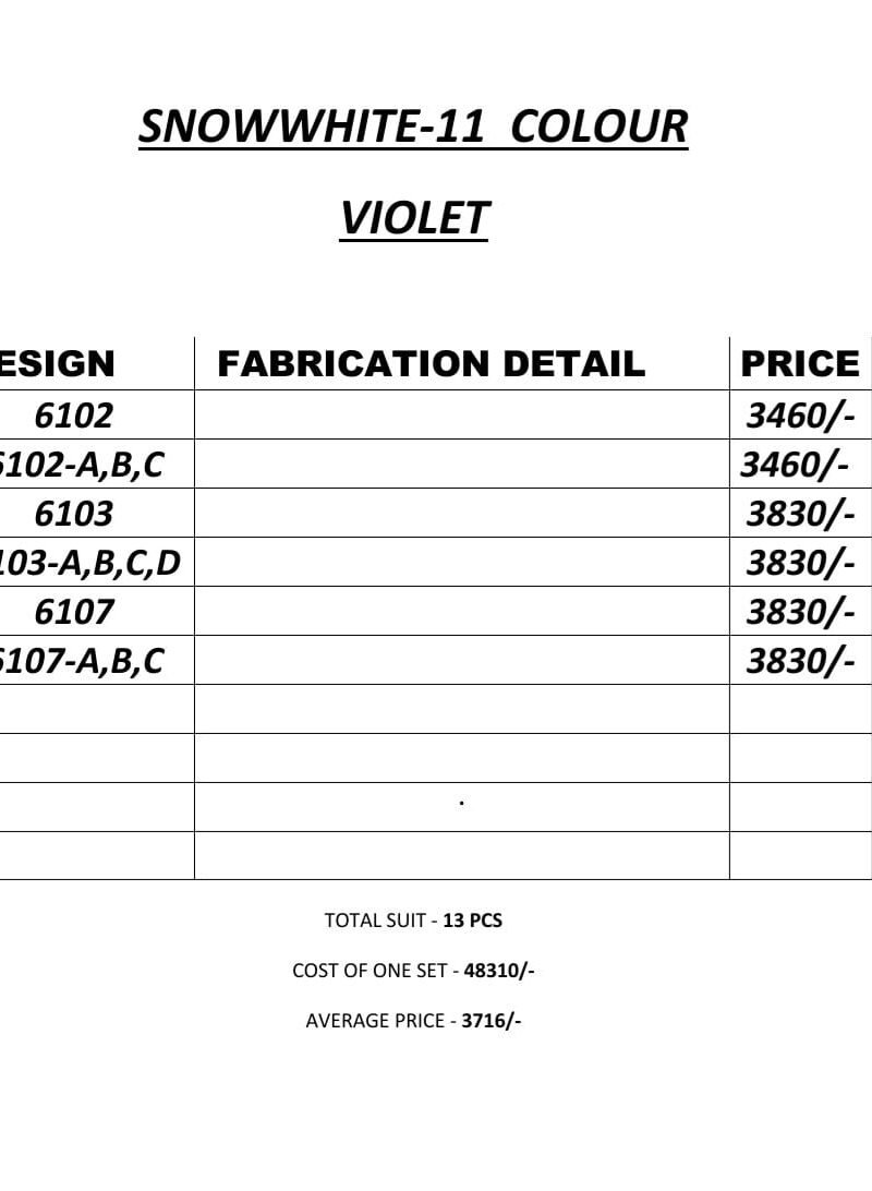 Dear sir,ย we now introduce SNOWWHITE-11 hit design with colours range in very short time
