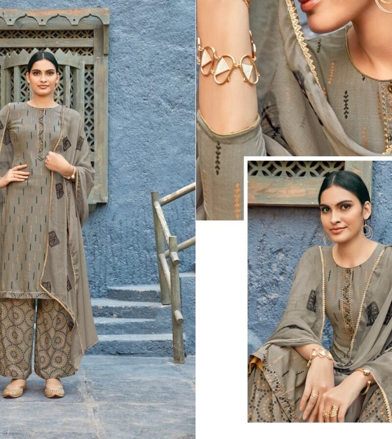 ??Top :2.50 MTR APX (REYON SLUB BLOK PRINT WITH TAI BUTTON AND LACE )